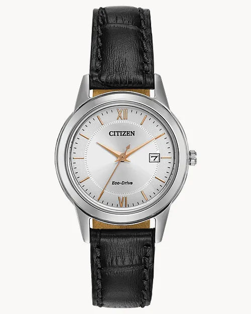 A classic design, rich brown leather strap, and date are features of this traditional dress timepiece from CITIZEN®'s Corso collection. Shown with a stainless steel case and a metallic silver-tone dial enhanced with rose gold-tone accents.
