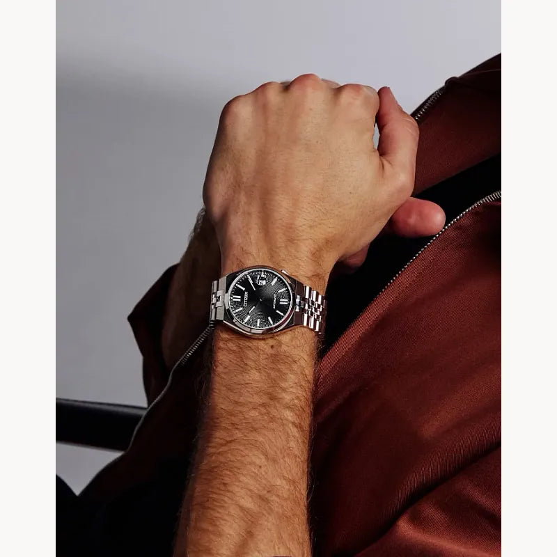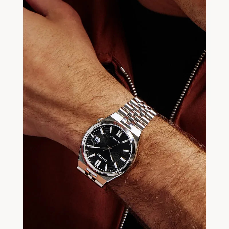 The latest TSUYOSA “60”, brings ultramodern sports styling right to your wrist. Executed in a versatile 40mm footprint, the sophisticated design of the watch makes a strong impression via a silver-tone stainless steel case and a seamlessly integrated, five-link bracelet. Underneath an anti-reflective sapphire crystal, the sporty timepiece makes use of a finely machined, sunray black dial, with a 3 o’clock date window. Powered by an automatic movement and offering up to 50 metres of water resistance and a 60-hour power reserve, the refined timepiece is a daily-wear choice ready for work, play, and everything in between. Calibre 8310.
