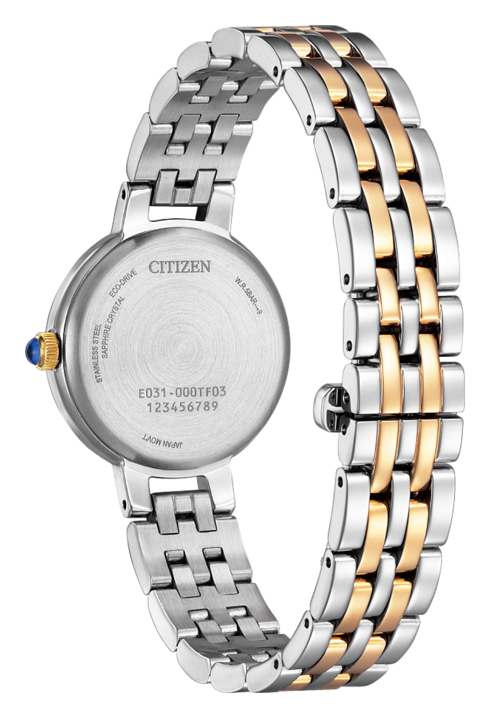 When it comes to elegant watches for women, the Citizen L “Classic” is the perfect addition to a collection. Featuring a two-tone silver- and rose gold-tone stainless steel case measuring 28mm across, its round shape is punctuated by a synthetic sapphire-set crown and flowing five-link bracelet. On the sectored white dial, the mother-of-pearl display features rose gold-tone accents, with the slim lines of the Breguet-style numeral indices matching the leaf-style hands. With this watch, you'll never need to worry about replacing a battery – this watch is sustainably powered by any light with our proprietary Eco-Drive technology. Whether you’re looking for a dress watch for special events or a beautiful timepiece to wear every day, the Citizen L “Classic” will look great on every wrist and at every occasion. Water resistant up to 50 meters. Calibre E031.
