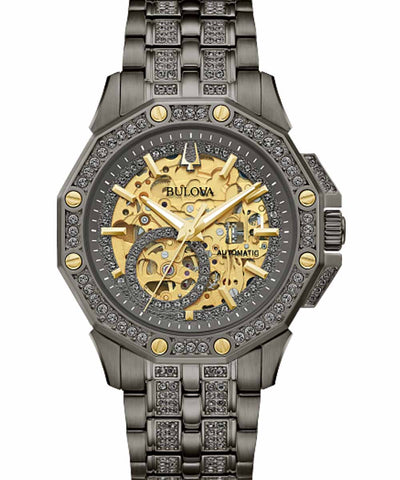 Bulova’s eye-catching Oceanographer men’s timepiece is a perfect blend of function and sport style. It features a stainless steel case and bright orange dial with a black supple rubber strap and fine Miyota automatic movement. It also has a rotating bezel in black and orange, and a calendar function, as well as being ISO certified, with water resistance up to 200M with a screw-down crown. It is topped with a domed sapphire crystal for the perfect finish. This is a modern take on a classic dive timepiece, and is sure to make a statement.
