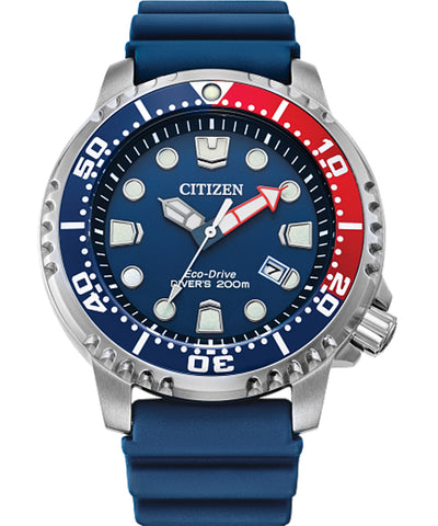 Touch the edge of the sky with the new Promaster. A bold 45mm stainless steel case in silver-tone centres the design, with the professional-grade pilot's watch mission-ready on the wrist – fully equipped with a bold set of chronograph pushers, 5-link stainless steel bracelet, and an outer slide rule bezel. Underneath a scratch-resistant sapphire crystal, the watch's data-driven display is on view, with white and silver-tone accents working against a dark background for a rapid legibility for the wearer. Towards the 6 o'clock position, a namesake northern hemisphere disc rotates counter clockwise, with the detail showcasing the world time with a map inspired design. Other standard and advanced functions of the watch include running hours and minutes, date indication, power reserve indication, world time, and a slide rule bezel function. This distinctive sports watch utilizes Citizen's Eco-Drive technology that’s sustainably powered by any light and never needs a battery. Water resistant up to 200 metres. Calibre H864.